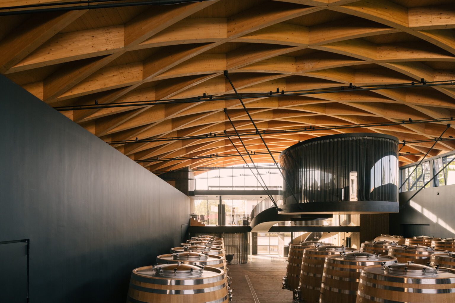 Architecture and winemaking tradition come together beneath a grand coffered vault, in a contemporary reinterpretation of Pier Luigi Nervi’s structural legacy.