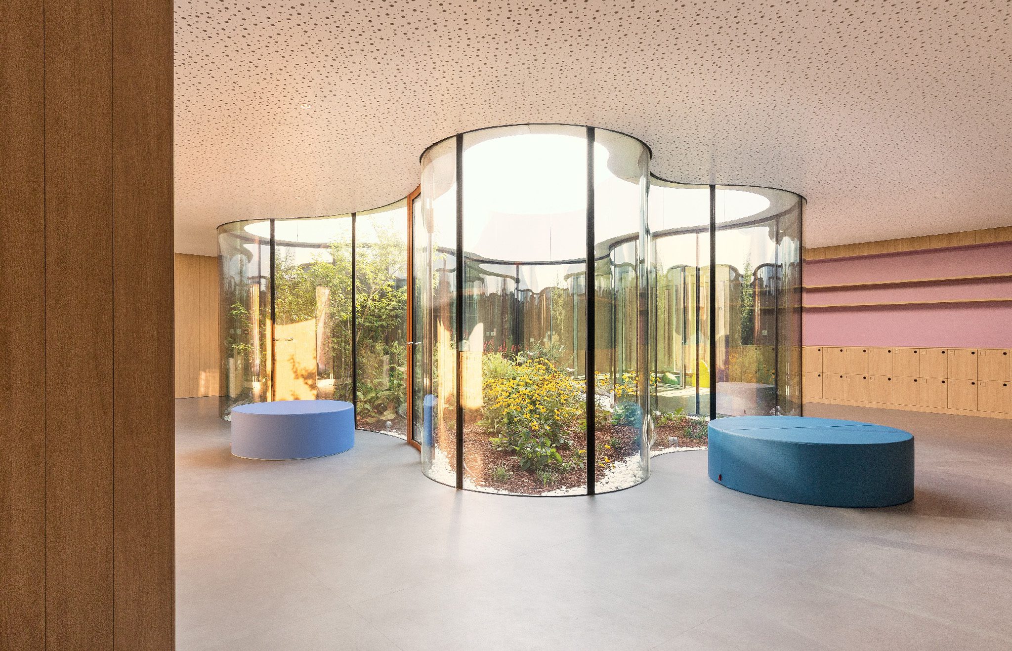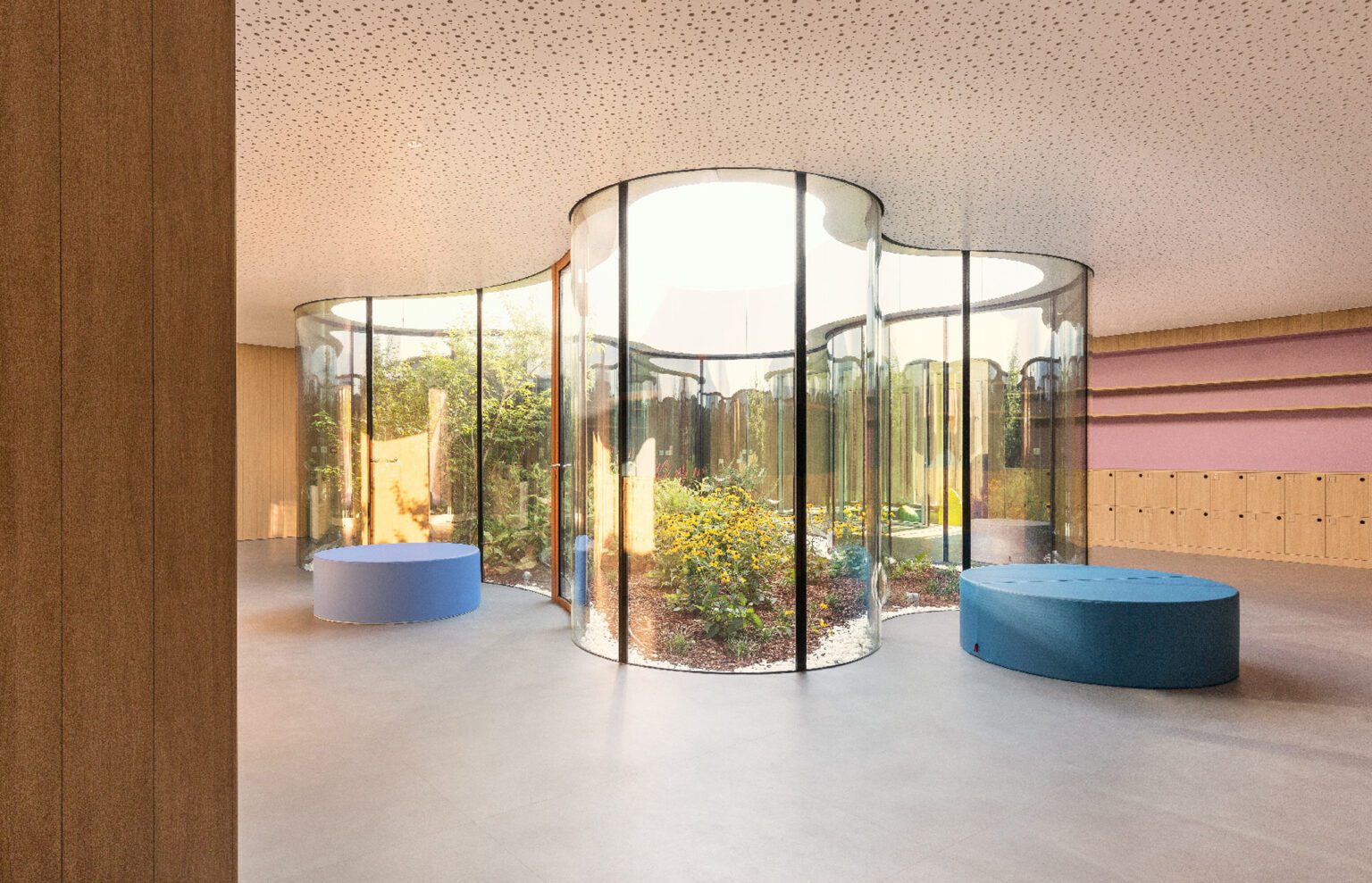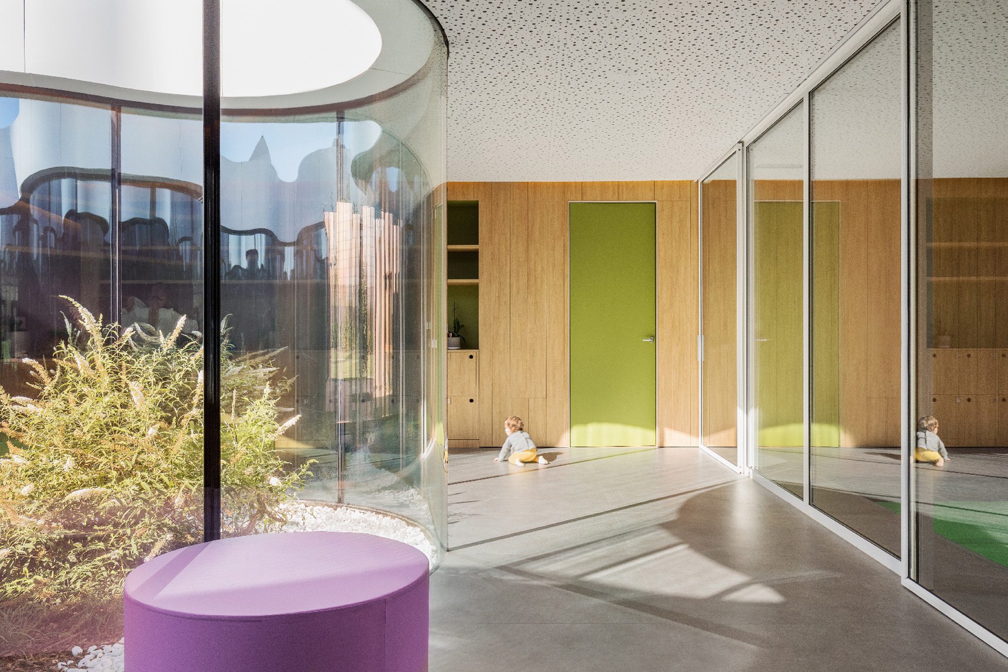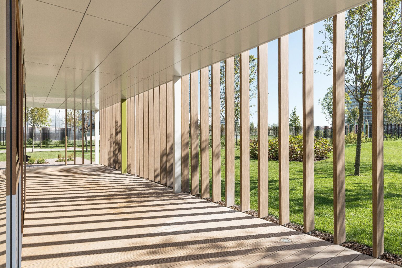A sustainable timber kindergarten, conceived as a small village organized around a central light-filled patio, in dialogue with the CityLife urban park.