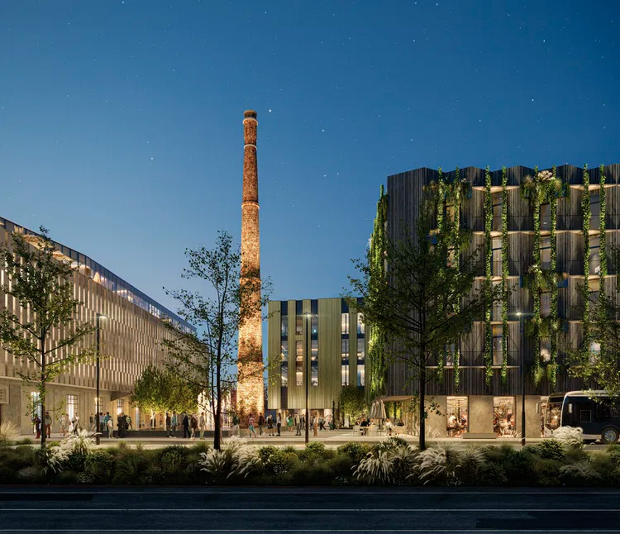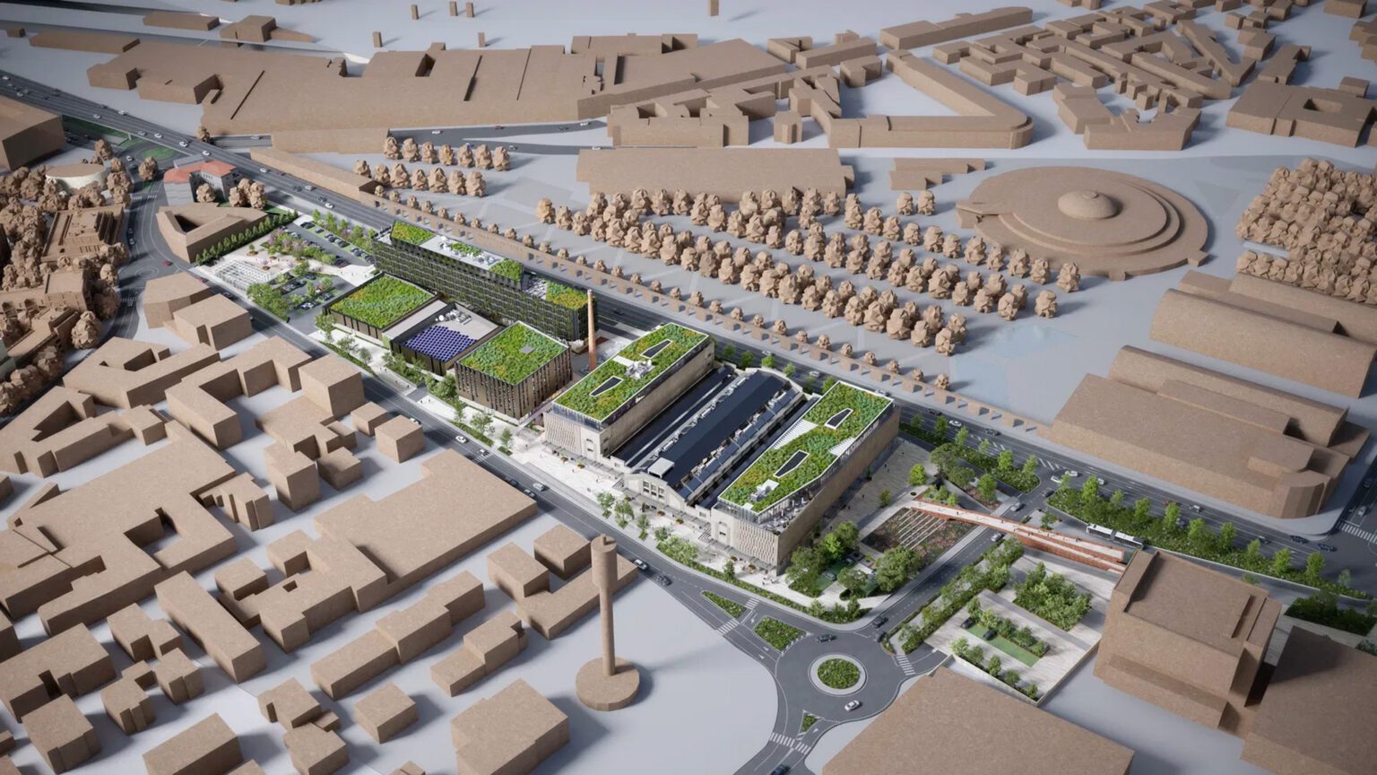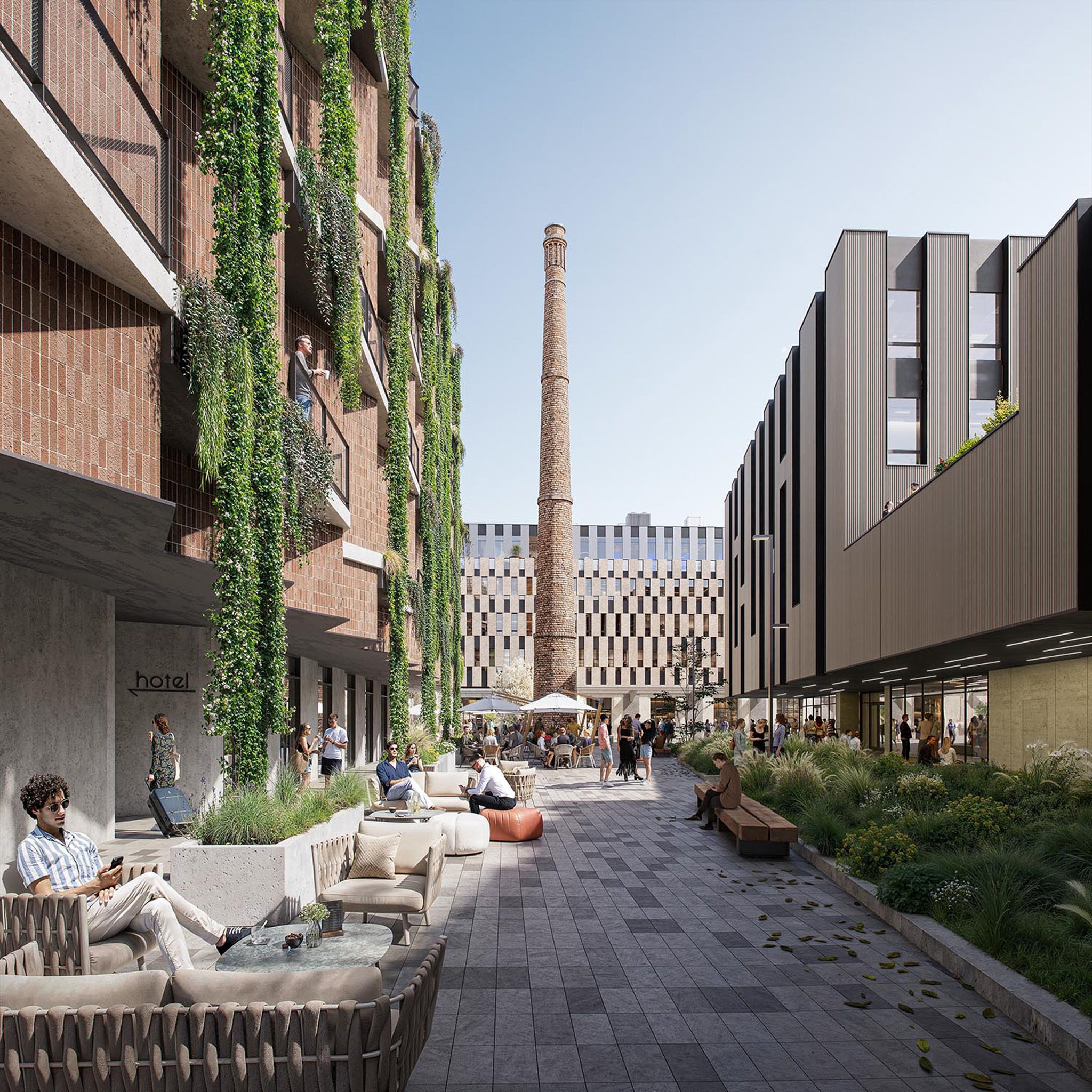 Across the 37,000 m² site, the development will include a commercial podium, restaurants and a food court, shops, offices, budget and lifestyle hotels, green areas, and underground parking facilities. The project combines the restoration of existing buildings with newly designed volumes, public spaces, inner courtyards, and green roofs.